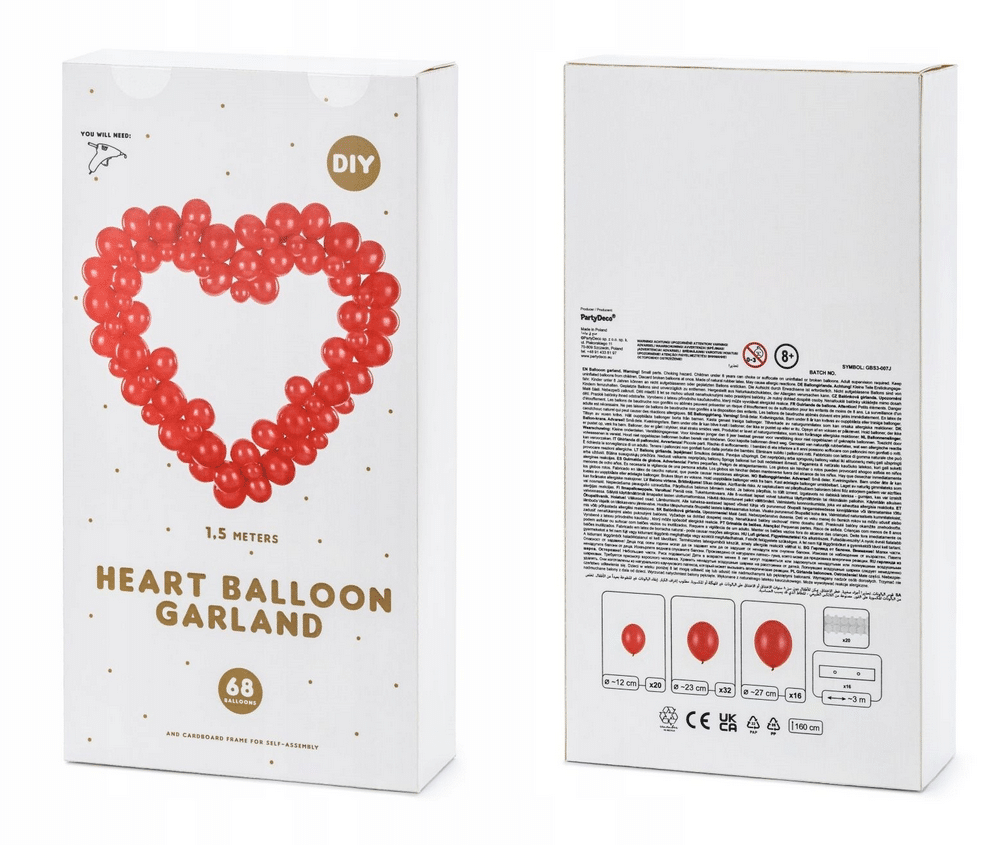 Oferowana przez nas balonowa girlanda w kształcie serca została wyprodukowana przy użyciu najwyższej jakości elastycznego i wytrzymałego naturalnego lateksu kauczukowego.