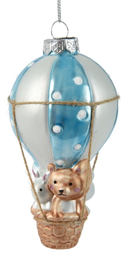 Wprowadź na swoją choinkę urokliwy i nietypowy akcent z tą wyjątkową bombką w kształcie balonu! Ręcznie malowana i pięknie zdobiona, przedstawia misia oraz królika w koszu balonu, gotowych do świątecznej przygody.