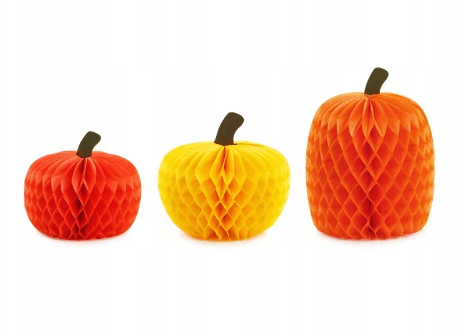 Lekkie i efektowne dekoracje bibułowe w kształcie dyni to doskonały sposób na wprowadzenie jesiennego klimatu do każdego wnętrza. Zestaw zawiera 3 dynie w różnych rozmiarach i kolorach, wykonane z ekologicznej bibuły o strukturze plastra miodu.