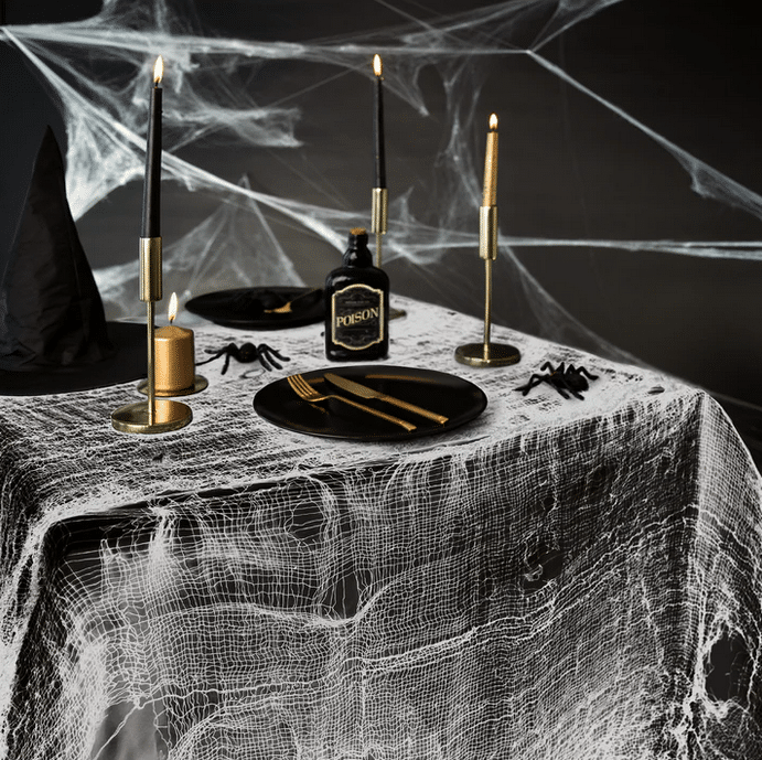 Uniwersalna dekoracja w formie delikatnej, białej siatki o strukturze pajęczyny, która może pełnić różnorodne funkcje w zależności od Twoich potrzeb. Może służyć jako oryginalny obrus na halloweenowy stół, dodając mrocznego klimatu i tajemniczości każdej imprezie. Dzięki swojej strukturze, przypominającej pajęczynę, doskonale sprawdzi się jako dekoracja wnętrza, tworząc atmosferę grozy podczas Halloween. Można ją również wykorzystać jako dodatek do kostiumu — na przykład w roli peleryny lub elementu upiornego stroju, co czyni ją idealnym uzupełnieniem kreatywnego przebrania. Lekka i łatwa w formowaniu, daje nieograniczone możliwości dekoracyjne.