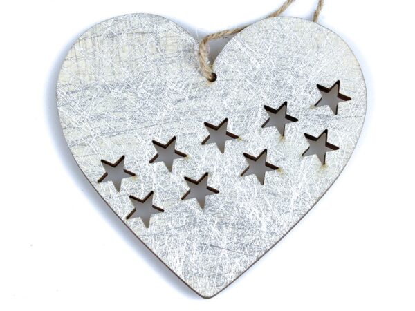 Drewniane serca na choinkę srebrne 5x