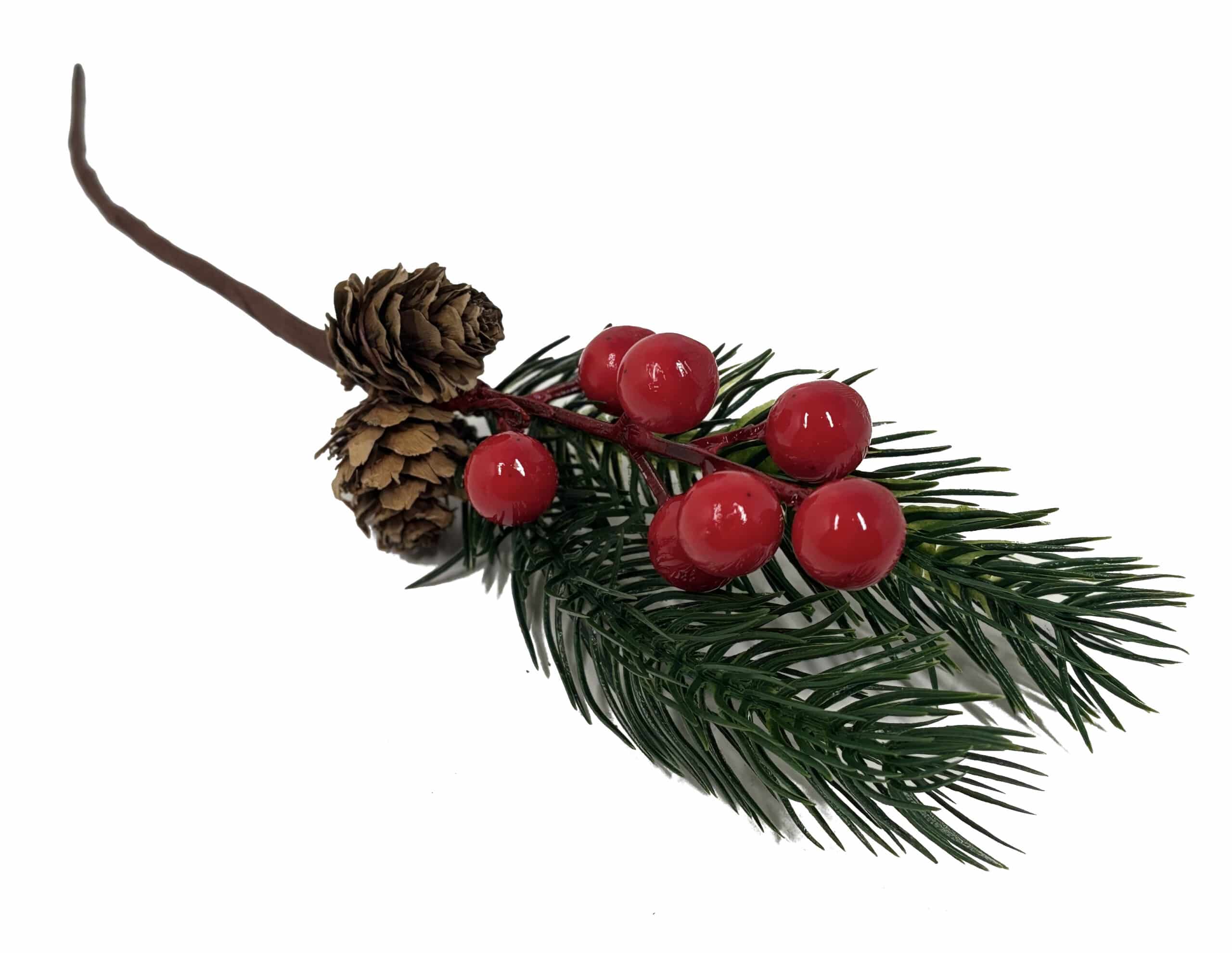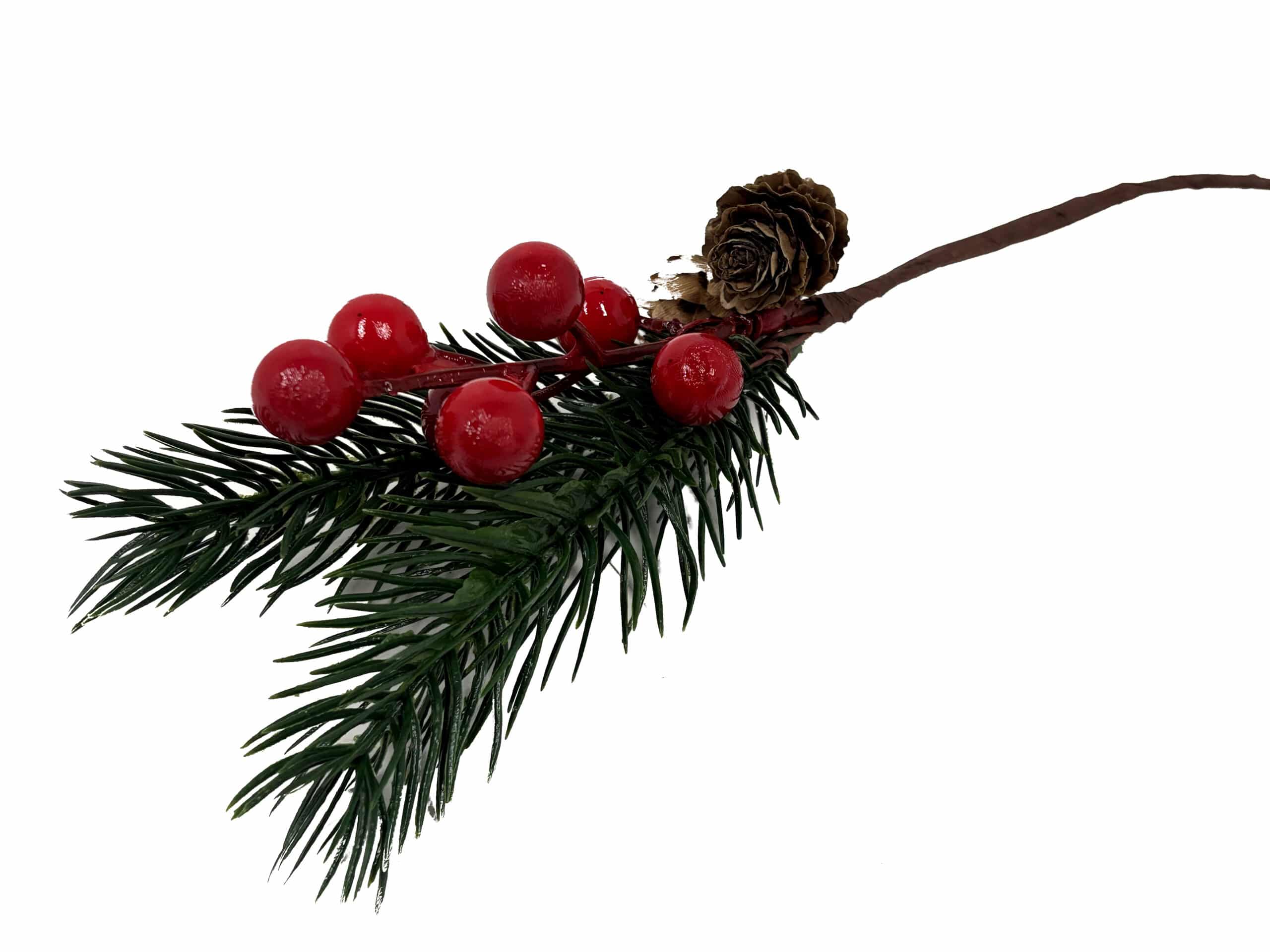 🌲 Gałązka do kompozycji świerk 25 × 7 cm – jarzębina i szyszka – 1 sztuka
