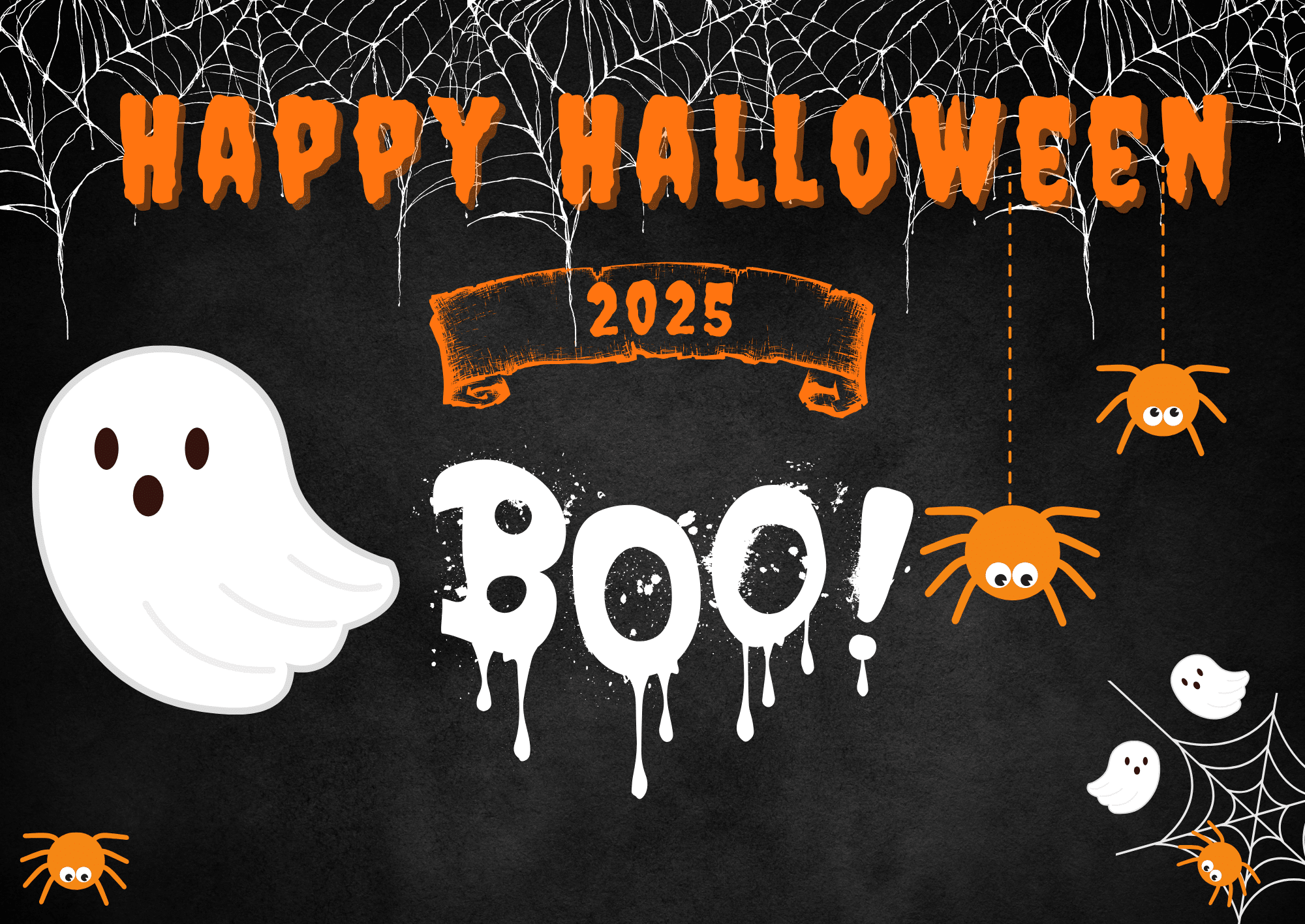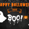 Plakat na Halloween wzór Boo!” w kolorze czarnym.