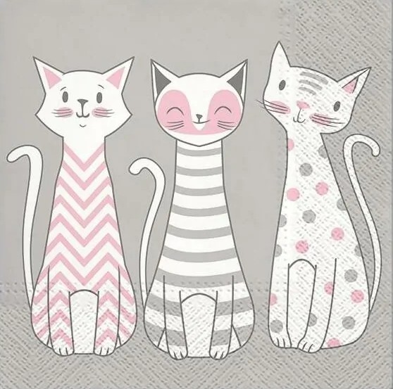 Papierowe serwetki z nadrukiem KotyWyrób posiada atest PZHIlość sztuk w opakowaniu: 20 Doskonały dodatek przyjęcia.