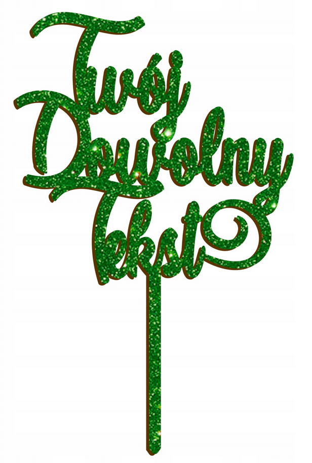 Personalizowany topper na tort z zielonej brokatowej pleksi to elegancka i efektowna dekoracja, która przyciąga uwagę i nadaje wyjątkowego charakteru każdej uroczystości. Intensywny zielony kolor z brokatowym połyskiem pięknie prezentuje się na torcie, tworząc stylowy element dekoracyjny stołu.