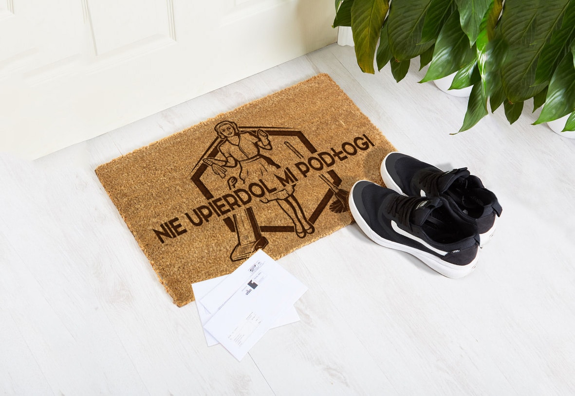 Szukasz wycieraczki, która rozbawi gości już od progu i doda wyjątkowego stylu Twojemu wejściu? Model „Nie Upie*dol Mi Podłogi” to doskonały wybór dla osób z dystansem.