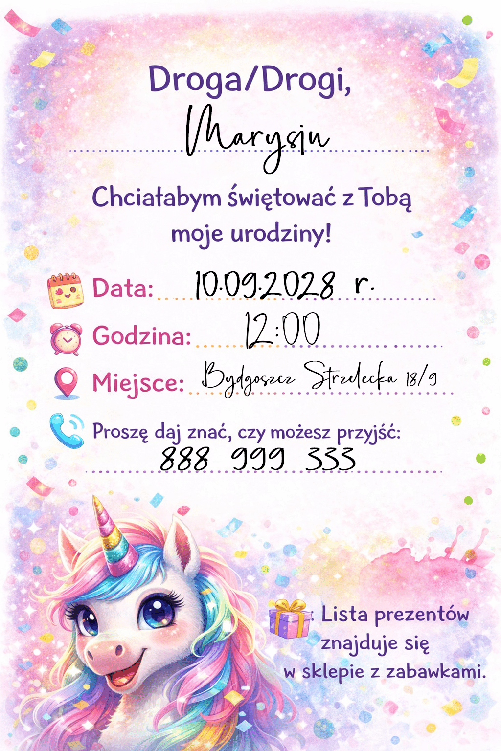 Zaproszenia urodzinowe Jednorożec – magiczne zaproszenie na przyjęcie