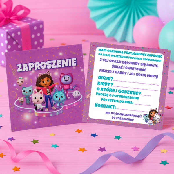 - 1 zaproszenie urodzinowe Koci Domek Gabby