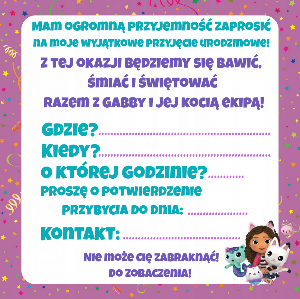 Zaproszenie na urodziny Gabby – idealne dla fanów Kociego Domku