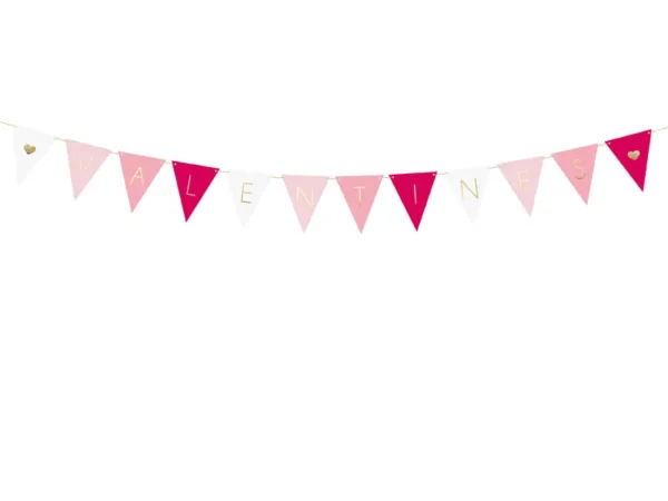 - baner w kształcie trójkątnych proporczyków napis Valentines o długości 2m + złoty sznureczek w zestawie