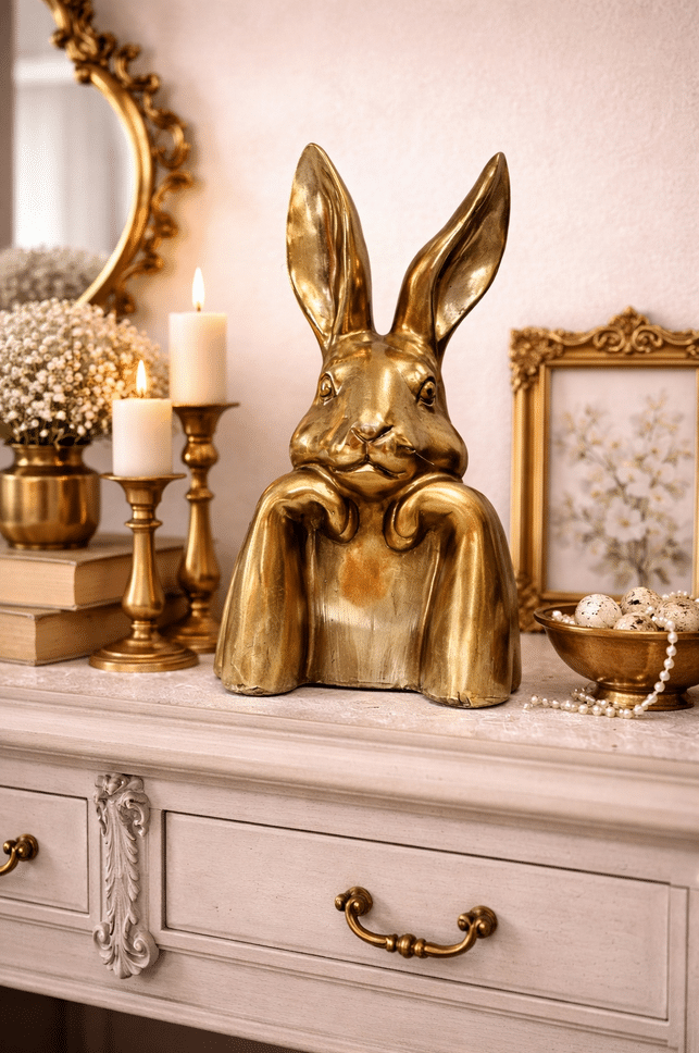 Zając królik złoty glamour 28 cm – figurka dekoracyjna vintage